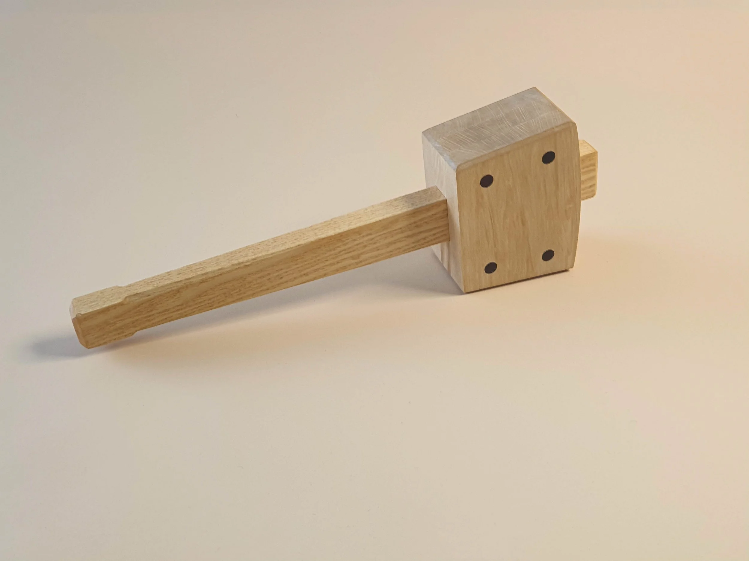 Gemaakt van het wat meer buigzame hickory (de steel) en erg harde steenbeuken. Dit is een hamer die gebruikt wordt bij montage en beitelwerk.