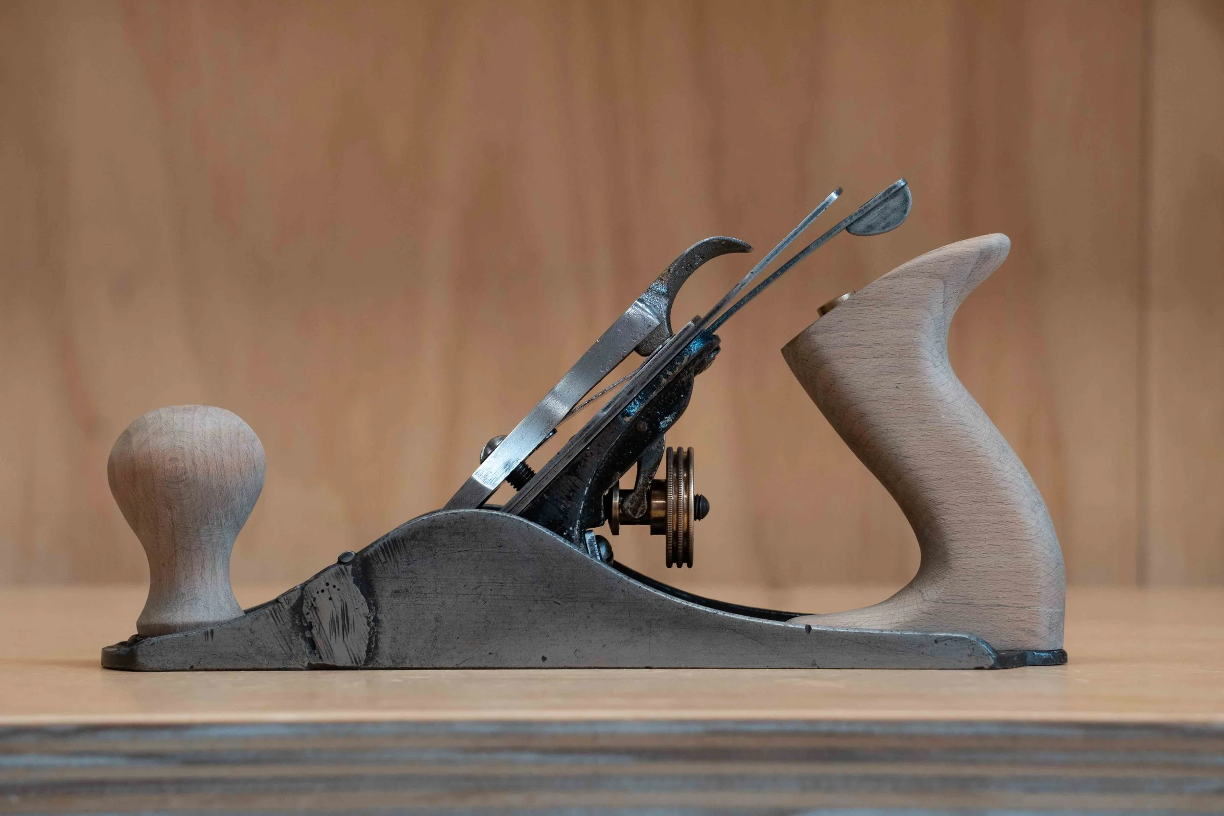 Deze oude schaaf van mijn opa (die voornamelijk metaalbewerking deed) mocht ik hebben. Echter had deze eerst wel wat liefde nodig.
